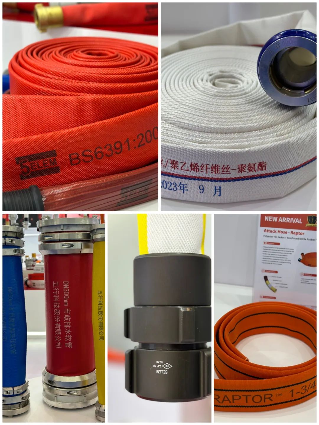 針對國際市場,五行科技帶來了2款全球新品:消防高壓作戰水帶和消防森林滲漏水帶。