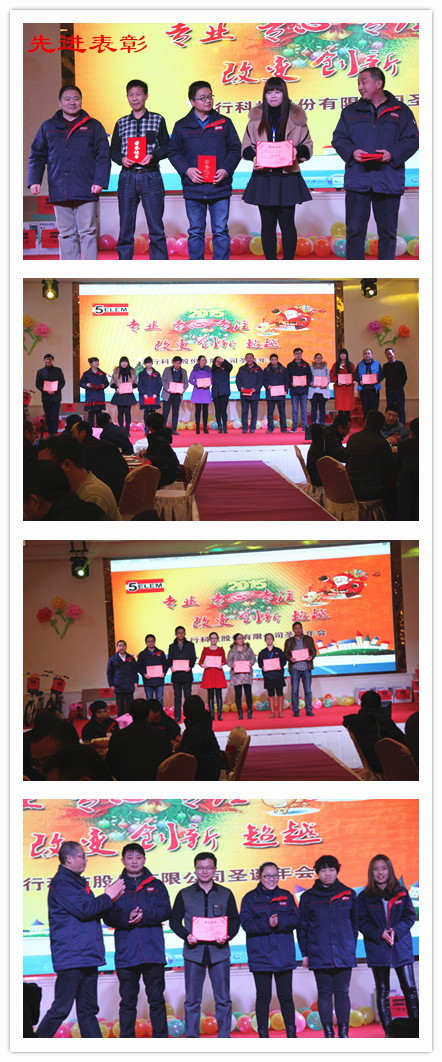 年會中,公司董事長沙月華、復合軟管事業部總經理陳勇、常務副總經理劉玲、副總經理周杉鴻、技術總監顧春東分別為先進人員頒發證書。領導、同事激情獻唱。